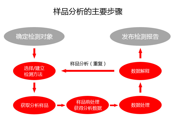 确定产品图号—核对生产工艺—选择检测方法—获得工艺参数—数据处理—数据解释—发布检测报告(或重复过程)
